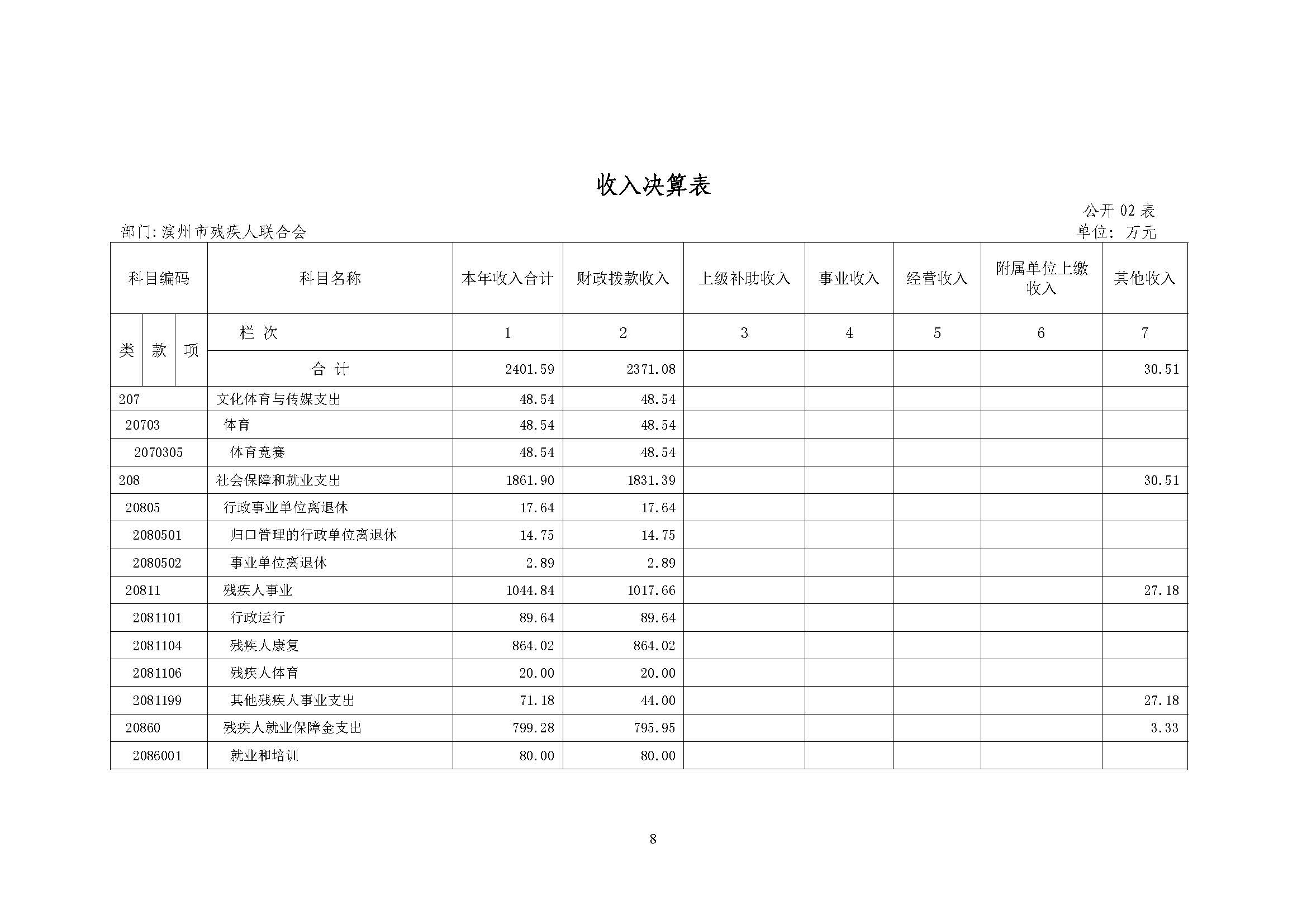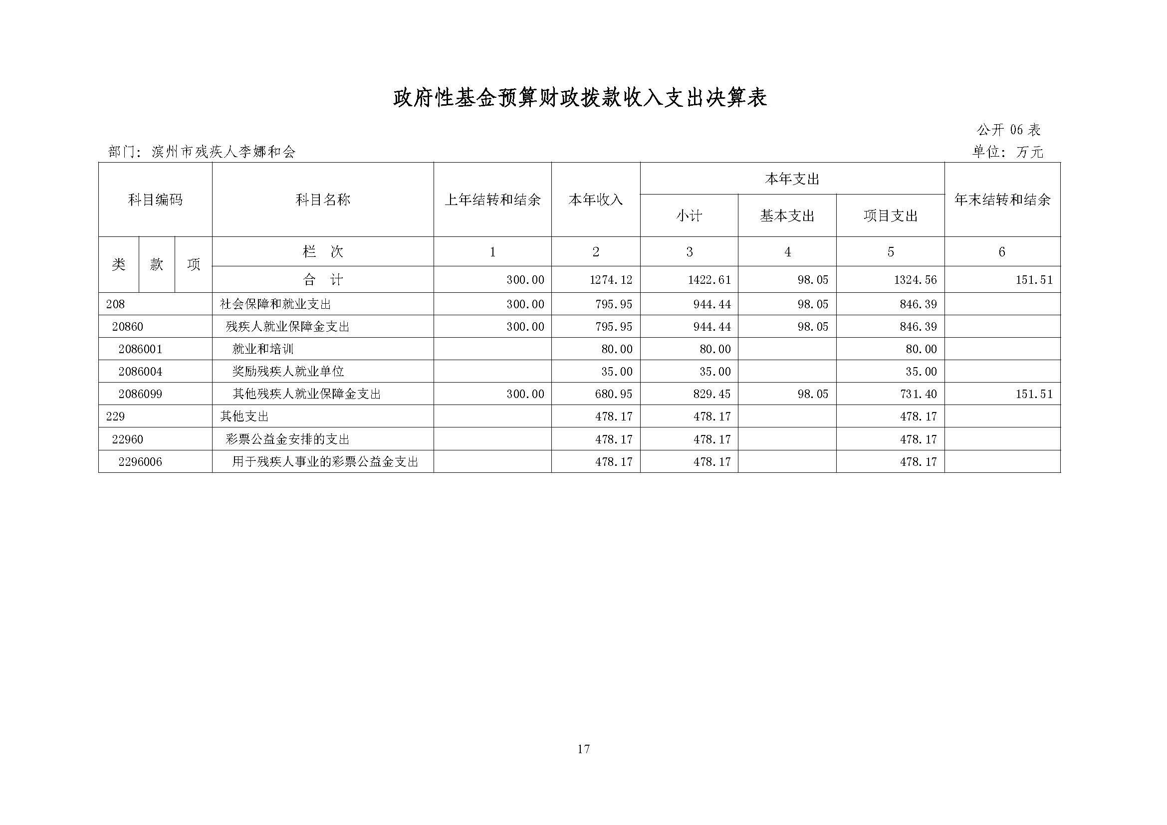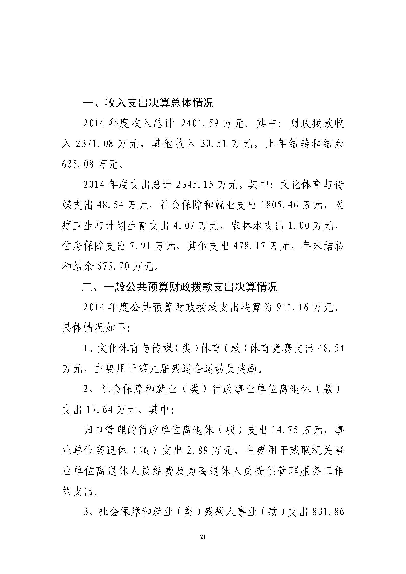 2014年度滨州市残联部门决算