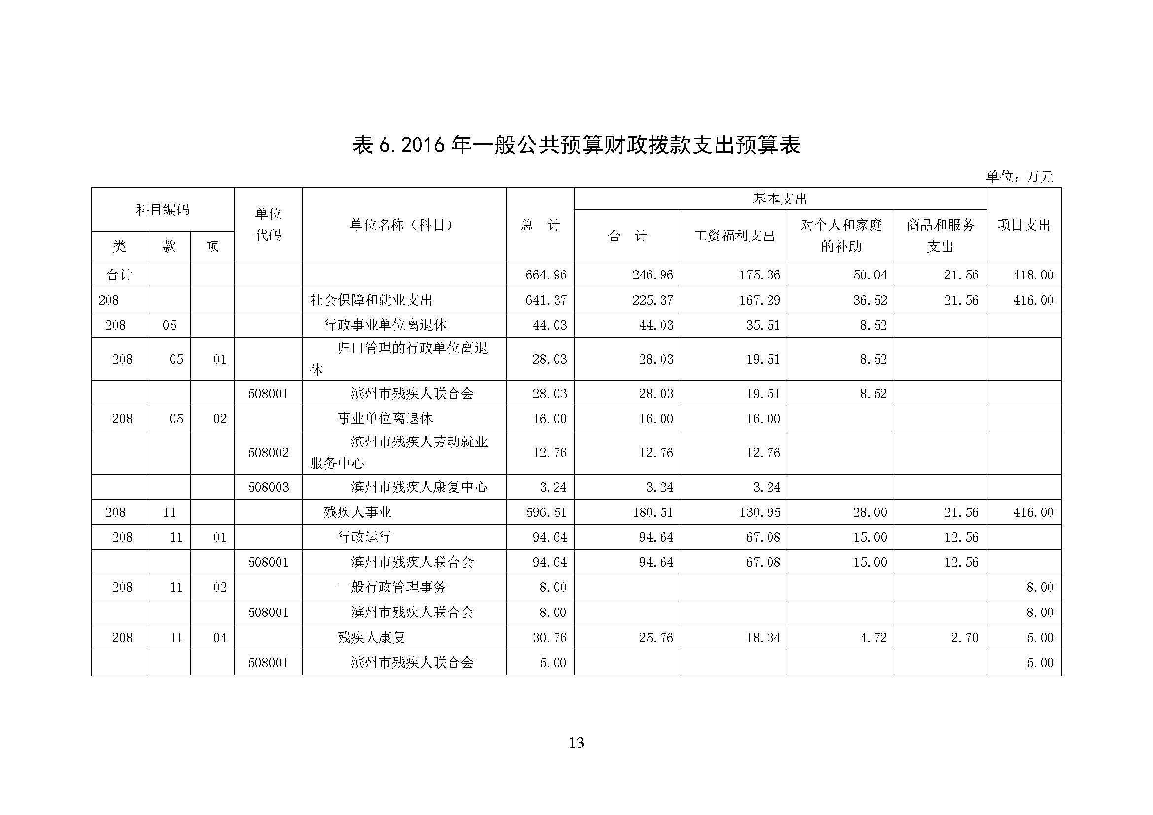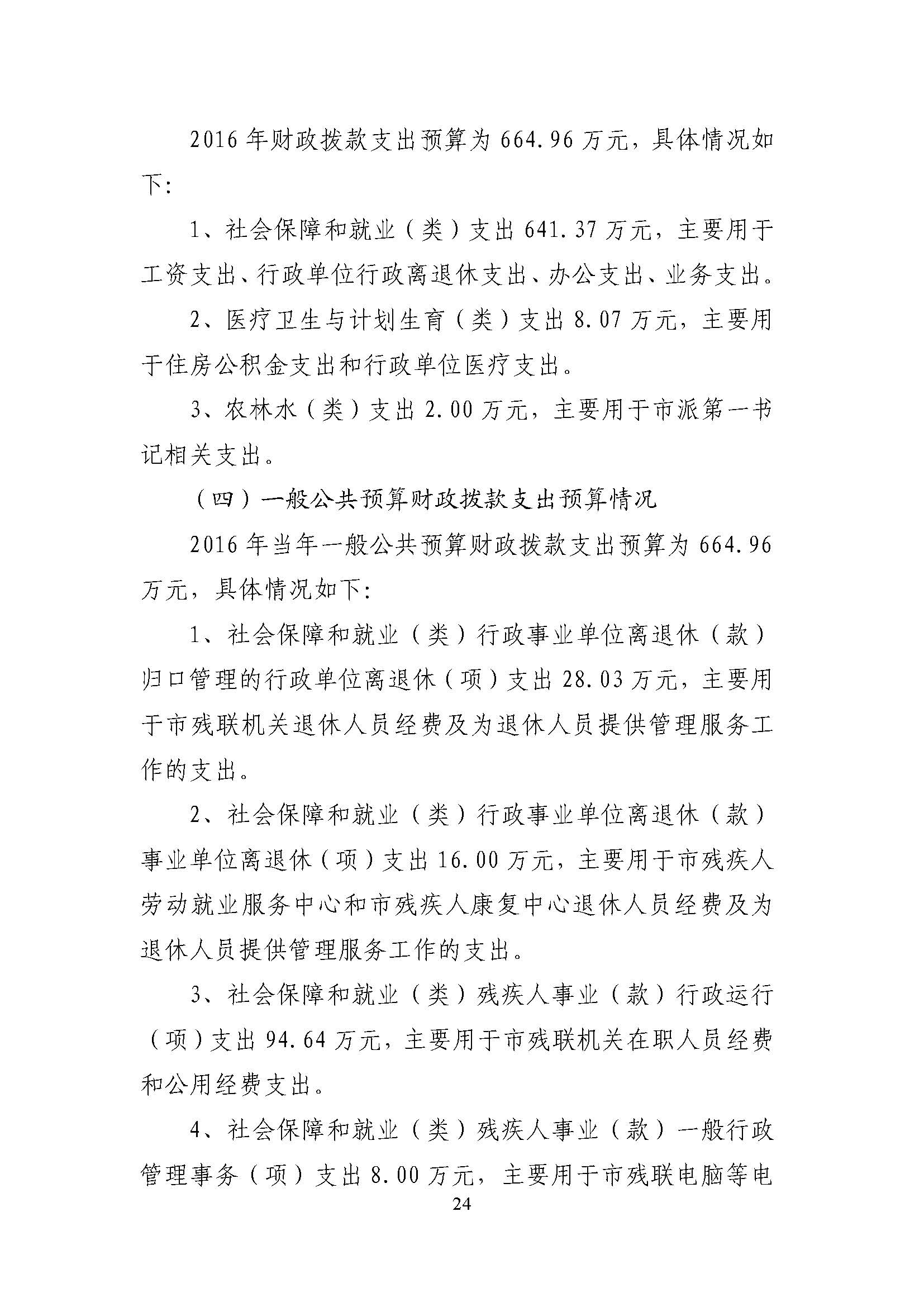 2016年滨州市残联部门预算公开