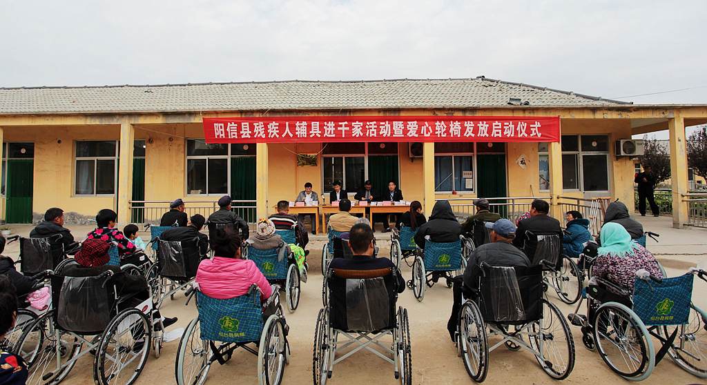 2017年以来,阳信县持续开展了“残疾辅具进千家”活动,已向有康复需求的残疾人发放残疾辅具2980件(其中轮椅180辆,掖拐100副,折叠便椅120个,四角手杖350个,框式助行器50个,防褥疮气垫60个,爱心收音机2000个,盲杖20个,电子助视器10个,放大镜30个,门铃10个,闹钟10个,语言电饭煲20个,单筒望远镜20个),受到了广大残疾朋友的广泛好评。近期,阳信县又为重度肢体残疾人购置轮椅200辆,争取桓台县无偿捐助爱心轮椅100辆,共计300辆轮椅,计划通过各乡镇(街道)向有需求肢体残疾人免费发放,主要用于0—17周岁肢体残疾人和建档立卡的肢体残疾人,以便帮助他们走出家门,融入社会。在劳店镇举行全县残疾人辅具进千家暨爱心助残轮椅发放仪式后,其它乡镇(街道)也将开展这项活动,让更多的需要求助的残疾朋友感受到党和政府的关怀和温暖。